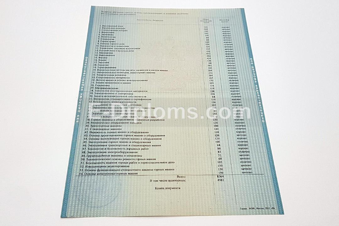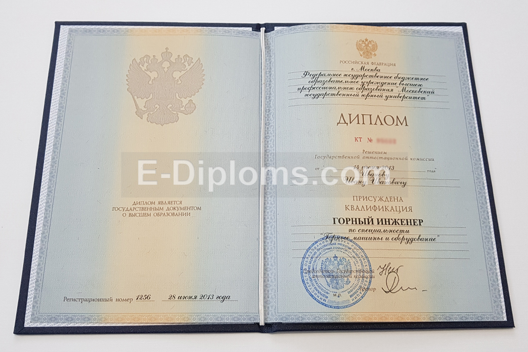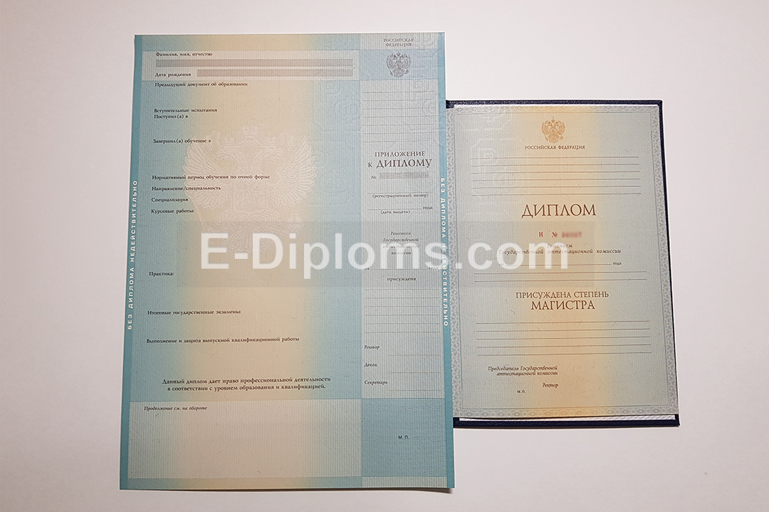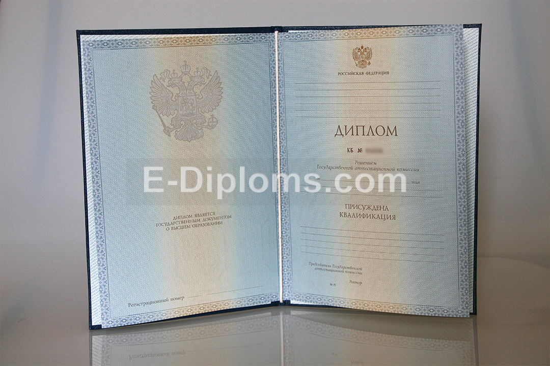 Диплом изготавливается на таких же бланках, которые выдавались выпускникам ВУЗов России в 2012, 2013 годах. Учебная программа, курсовые, ВКР соответствуют выбранному направлению подготовки и выбранному университету; гербовая печать и подписи, как в оригинале.
