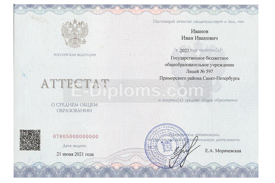 Аттестат за 11 класс с QR кодом 2021-2022 года