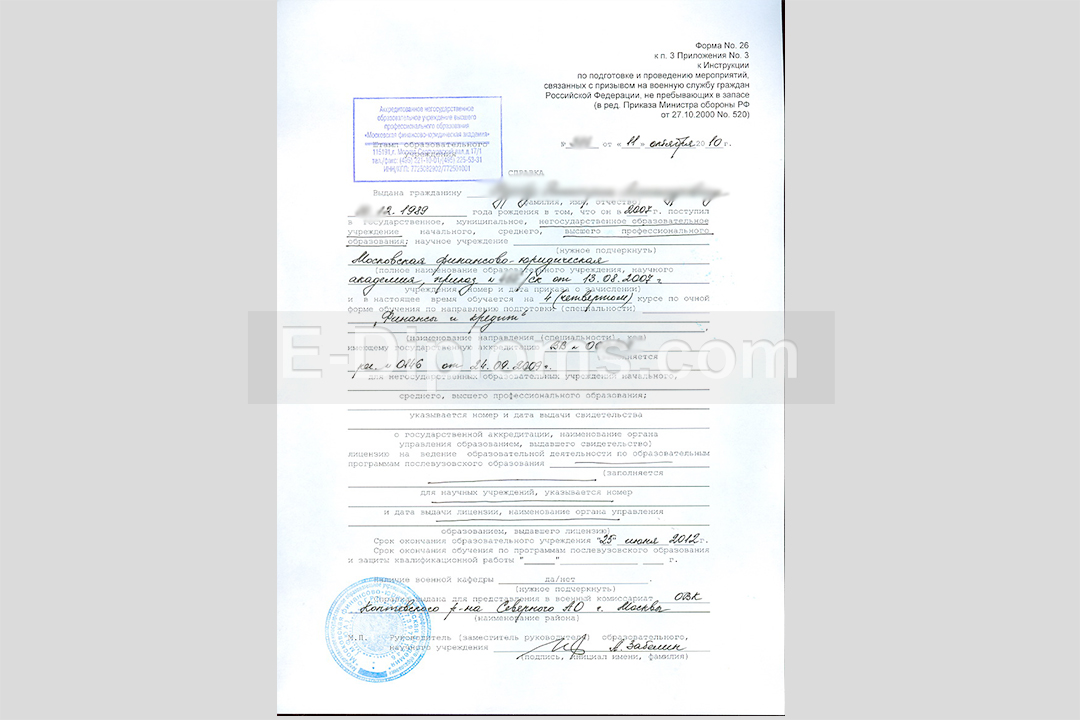 Справка в военкомат из учебного заведения